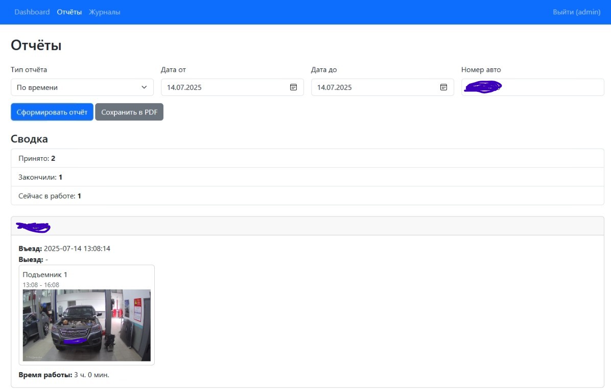 Устали тратить время на ручной учёт и опоздания машин по этапам обслуживания? Наше решение автоматизирует весь процесс: от распознавания номера при въезде до финального отчёта по времени работы мастера — без покупки дорогостоящих камер.