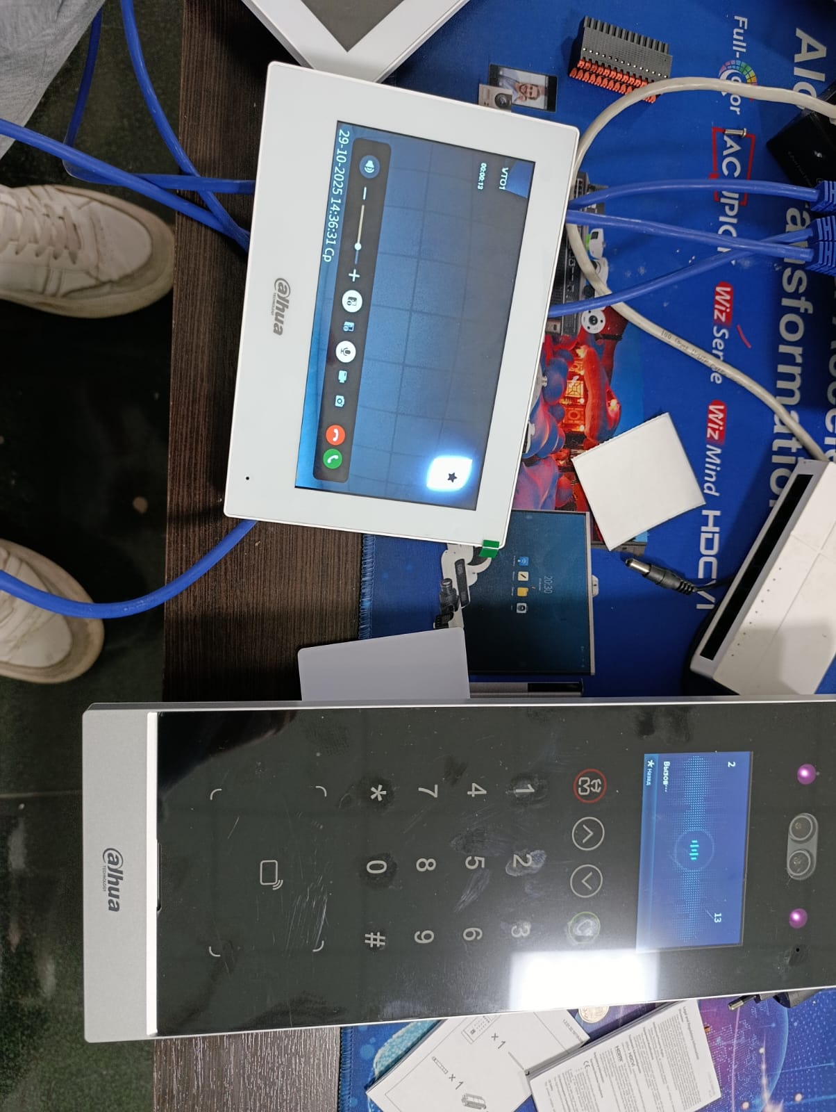 Для примера мы взяли одну вызывную панель VTO 6531H-S2 (VTO - вызывная панель, VTH - ответная часть) и три VTH 2621GV-WP, все это цифровые устройства.