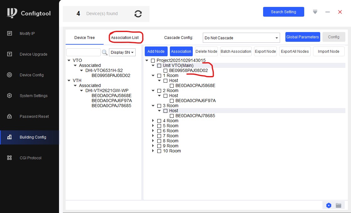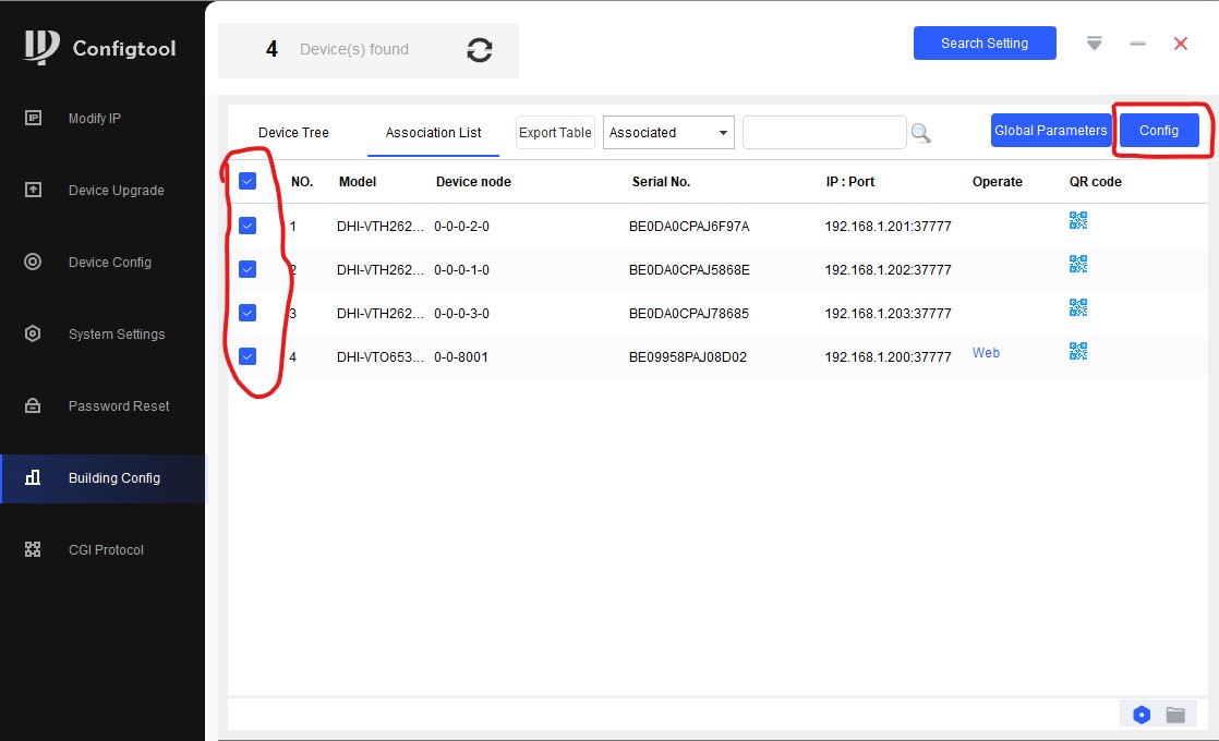 Далее переходим на вкладку "Association List", отмечаем все устройства и нажимаем "Config". Все, мы полностью настроили все устройства, они полностью готовы к работе.