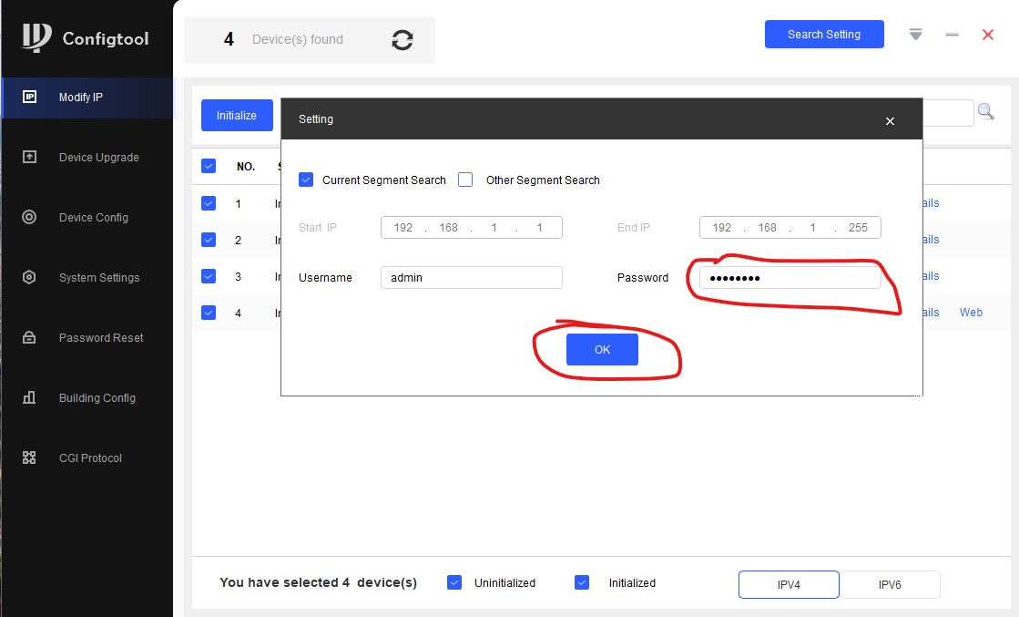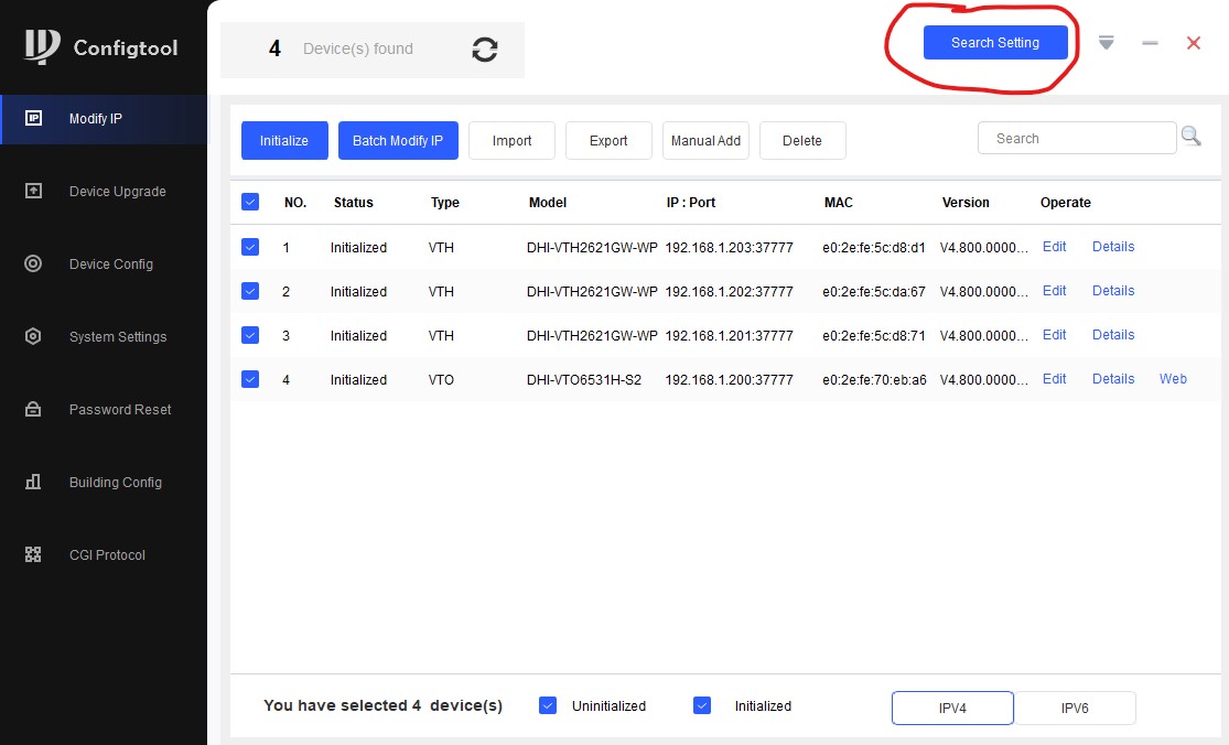 Далее нажимаем кнопку "Search Setting". Там нам нужно указать пароль от устройств
